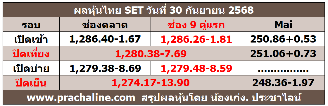 หัวข้อ: เชิญวิเคราะห์ หุ้นไทย SET เปิด-ปิดตลาด ดูผลหุ้นไทย วันที่ 1 ตุลาคม 68 (อ่าน 11,822 ครั้ง)