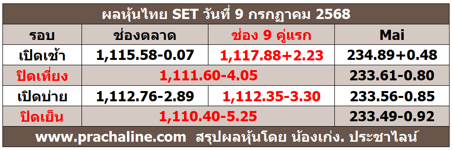 ปิดเย็น 1,110.40-5.25 Mai 233.49-0.92