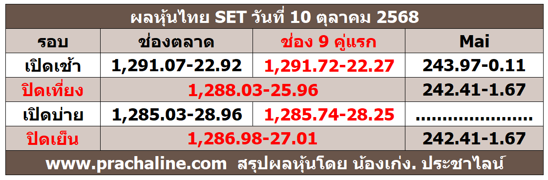หัวข้อ: เชิญวิเคราะห์ หุ้นไทย SET เปิด-ปิดตลาด ดูผลหุ้นไทย วันที่ 14 ตุลาคม 68 (อ่าน 11,669 ครั้ง)