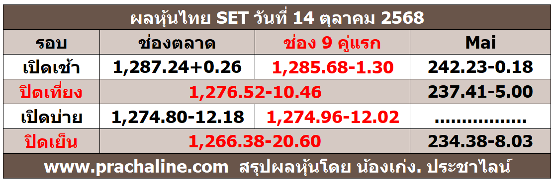 หัวข้อ: เชิญวิเคราะห์ หุ้นไทย SET เปิด-ปิดตลาด ดูผลหุ้นไทย วันที่ 15 ตุลาคม 68 (อ่าน 11,719 ครั้ง)