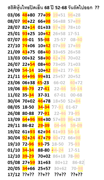 สถิติหุ้นไทยปิดเย็น 68 ปี 52-68 วันถัดไปออก  ??