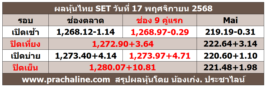 ค้าง 1279.19+9.93 Mai 221.19+1.69
