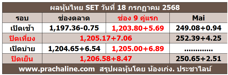 ค้าง 1205.75+7.64 Mai 250.16+2.02