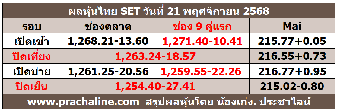 ปิดเย็น 1,254.40-27.41 Mai 215.02-0.80