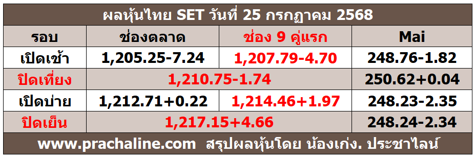 ปิดเย็น 1,217.15+4.66 Mai 248.24-2.34