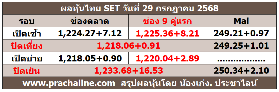 หัวข้อ: เชิญวิเคราะห์ หุ้นไทย SET เปิด-ปิดตลาด ดูผลหุ้นไทย วันที่ 30 กรกฏาคม 68 (อ่าน 15,084 ครั้ง)
