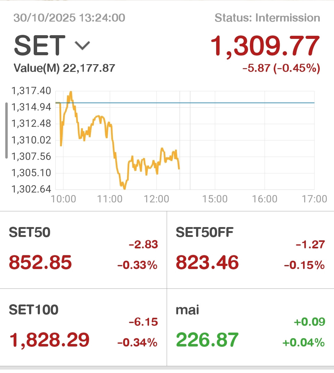 ปิดเที่ยง 1309.77-5.87