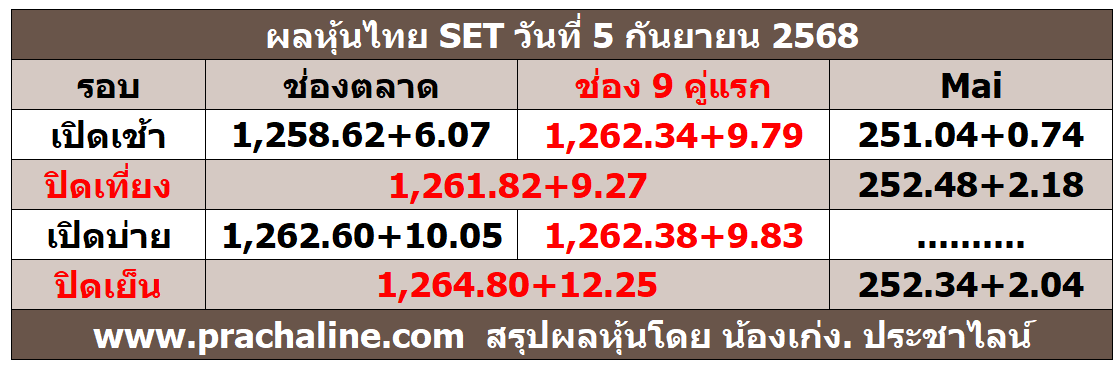 ค้าง 1262.72+10.17 Mai 251.73+1.43