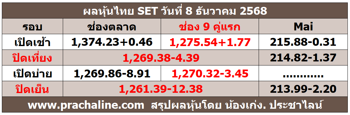 เชิญวิเคราะห์ หุ้นไทย SET เปิด-ปิดตลาด ดูผลหุ้นไทย วันที่ 9 ธันวาคม 68