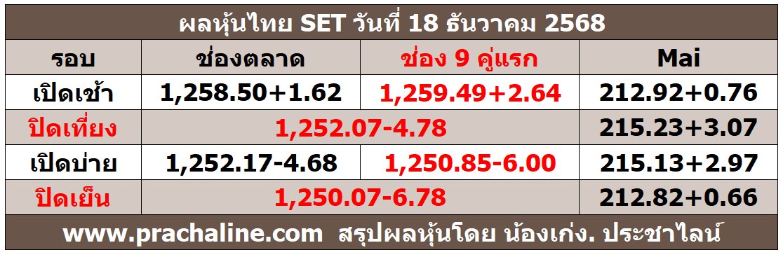 ค้าง 1,250.57-6.28 Mai 214.23+2.07